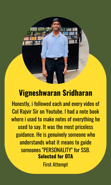 Sir has inspired me to be a truthful candidate and appear for SSB with my best preparations done with utmost zeal.The numerous subject specific trainers in bootcamp helped me in being better informed about the various SSB stages along with advisable practices.Thank you for such an excellent initiative! 🙏🏻